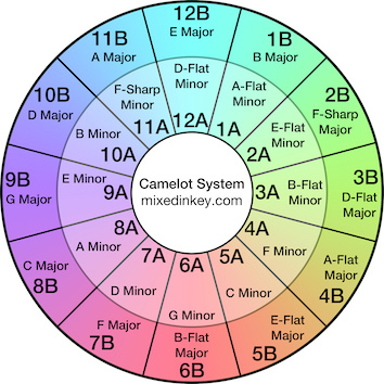 Günümüzde Dj’lerin ve müzik prodüktörlerinin harmonik mix tekniğini daha kolay uygulayabilmesi için yardımcı olabilen bir çok program üretildi. Bunlardan en çok bilineni Mark Devis tarafından üretilen ‘mixed in key’ isminde bir uygulama. Müzik teorisinden bildiğimiz 5’li çember kavramını bu programda ‘Camelot Wheel’ olarak isimlendirmişler. Parçaların ana notasının art arda sıralamalarını bilme konusunu daha basite indirgeyerek bize yardımcı olur. Aynı zaman herhangi bir parçanın ana notasından yola çıkarak farklı hangi notalardaki parçalarla daha uyumlu olduğunu bu çember yardımıyla görebiliyoruz. Örnek verecek olursak eğer; program parçamızın analizini yaptıktan sonra çıkan harf veya nota değerinin üstündeki, altındaki ve yanında gördüğünüz notalardaki parçaları daha uyumlu mixlenilebilir olduğunu bize gösteriyor. Daha detaylı olarak alttaki şekilde görebilirsiniz.